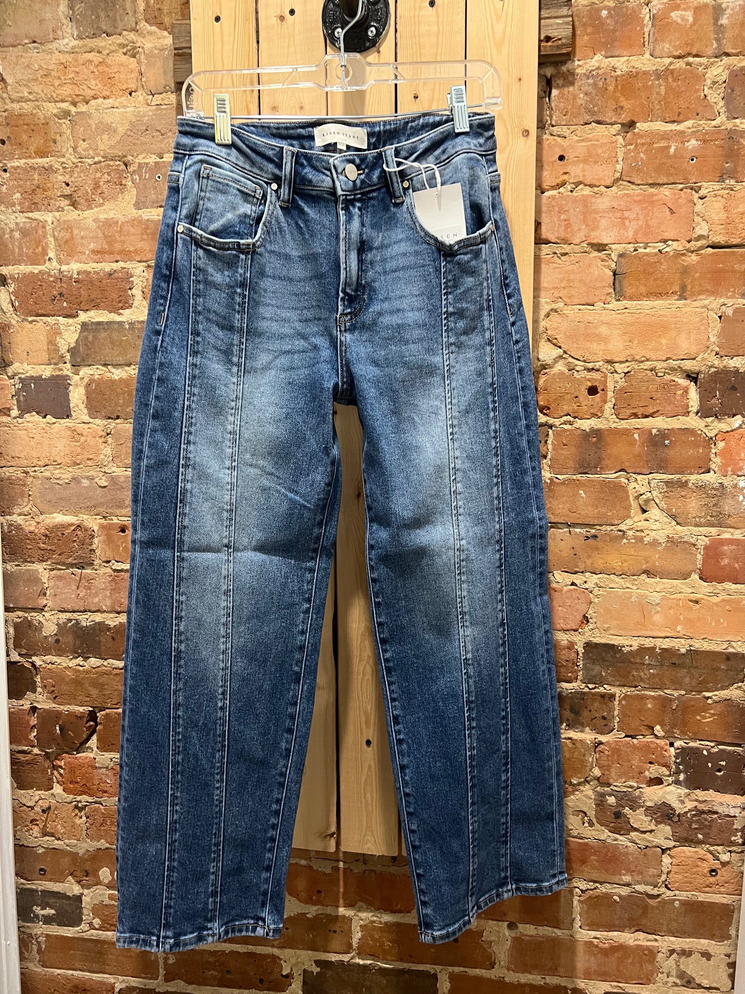 Meet your new everyday denim - the Brooklyn High Rise Crop Straight Leg Jean by Risen. Designed with a flattering high-waisted fit and a modern cropped length, these jeans blend comfort with effortless style. The vertical seam detailing down the front elongates the legs,while the soft stretch denim ensures a perfect fit that moves with you. Finished in a medium wash with subtle fading, they pair beautifully with everything from causal tees to chunky sweater for the laid-back, boutique-chic look.
